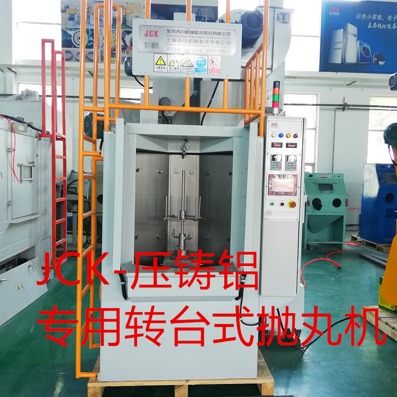 描述: 適合小型壓鑄鋁專用轉(zhuǎn)臺式拋丸機